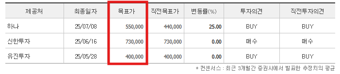📈 주요 증권사 전망 (2025년 8월 기준)