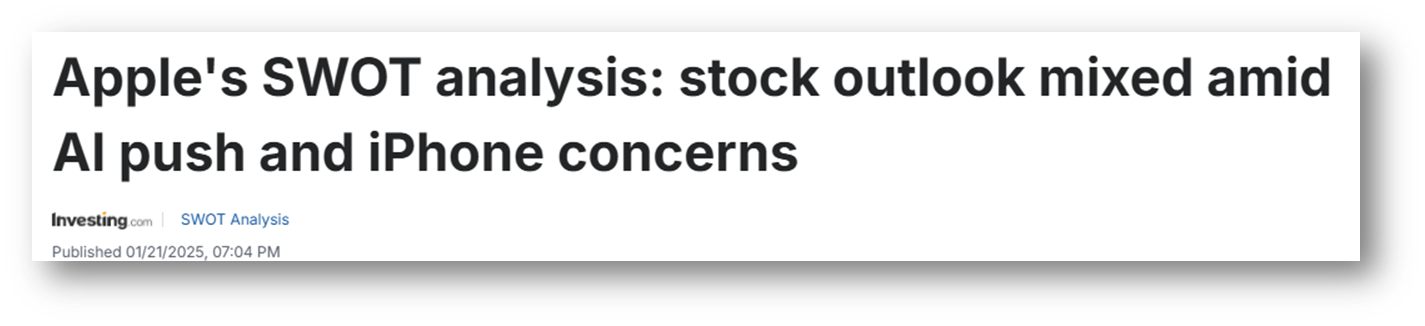 그러나 아이폰 판매와 관련한 우려가 있습니다. 2024년 11월 기준 중국 시장에서 아이폰 판매량이 28% 감소했고, 시장 점유율도 하락하는 등 중국 내 경쟁이 심화되고 있습니다.