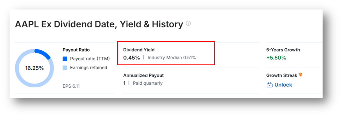 👉애플은 배당 안정성과 성장 잠재력을 모두 가진 기업인데요, 최근 5년간 배당 성장률이 +5.5%로 꾸준히 상승했으며, 배당 수익률은 낮은 편이라고 할 수 있어, 배당보다는 장기적인 수익률을 기대하며 가는 기업이라고 할 수 있습니다.