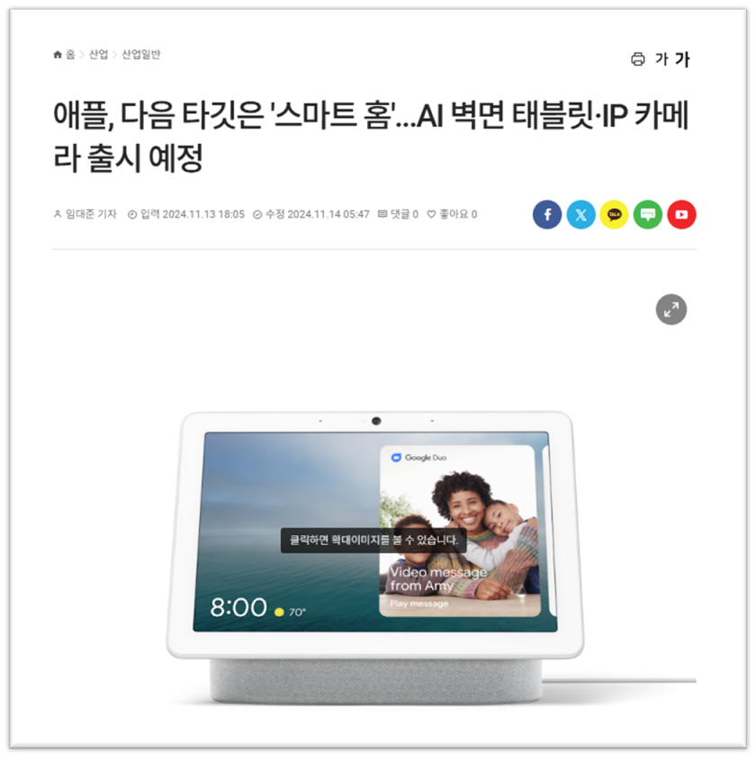 ⬆️ 스마트 홈 사업에 뛰어 든 애플의 횡보를 지켜봐주세요!⬆️