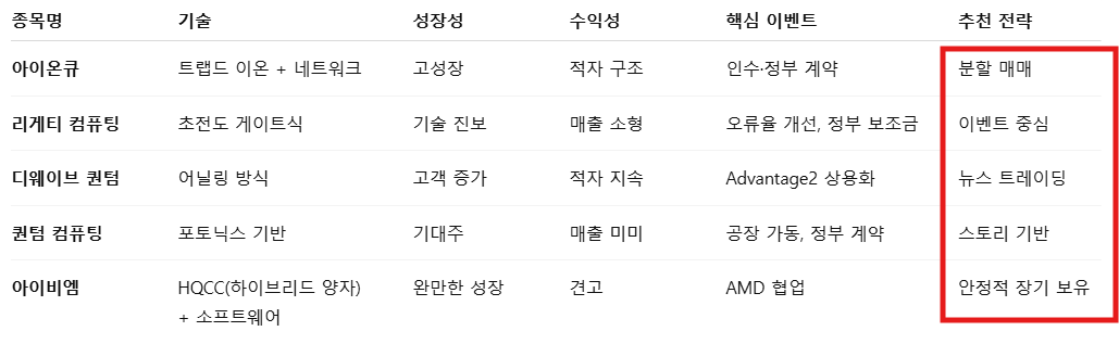 ▶ 양자 리더 서사를 가진 테마 대표주. 단, 수익성·과열 감안해 이벤트 분할 접근 필요