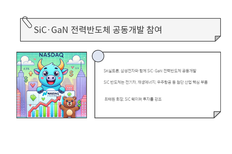 • SK실트론, 삼성전자와 함께 SiC·GaN 전력반도체 공동개발에 참여 중입니다.