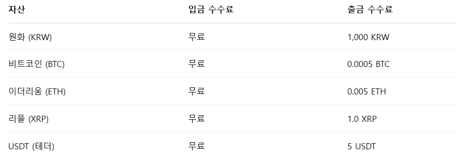 📌 출금 시 네트워크 수수료는 디지털 자산별 상이