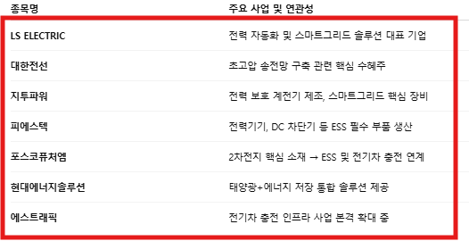 먼저 LS ELECTRIC은 스마트그리드와 전력 자동화 솔루션을 제공하는 핵심 기업이며, 대한전선은 초고압 송전망 구축에서 독보적인 기술력을 보유해 수혜가 기대되고 있습니다!