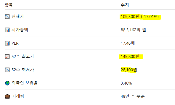 → PER 16.84 기준 적정가 약 14만 원