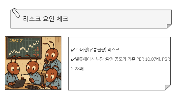 📌 공모가가 다소 부담스럽게 느껴질 수 있으나, PER은 10배 수준으로 과도한 고평가로 보기는 어렵습니다.