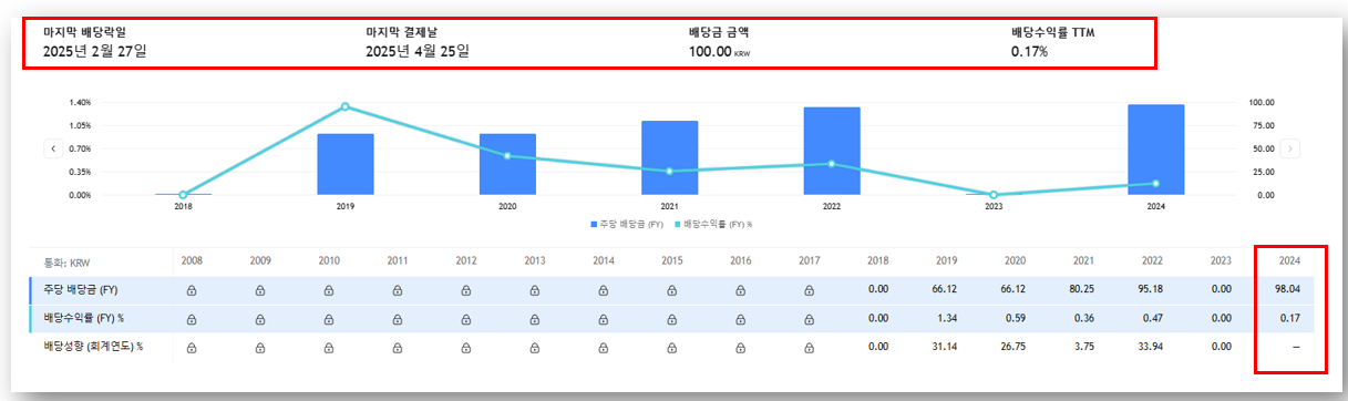 - 2025년 배당금: 100원 (4월 25일 지급 예정)