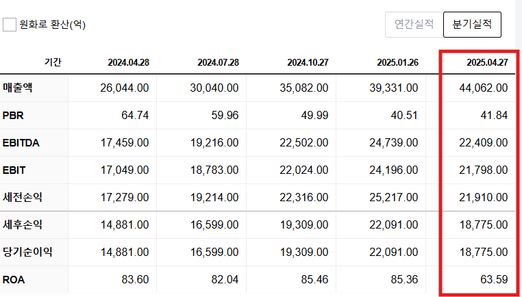 • 2025년 1분기 매출: 44,062백만 달러