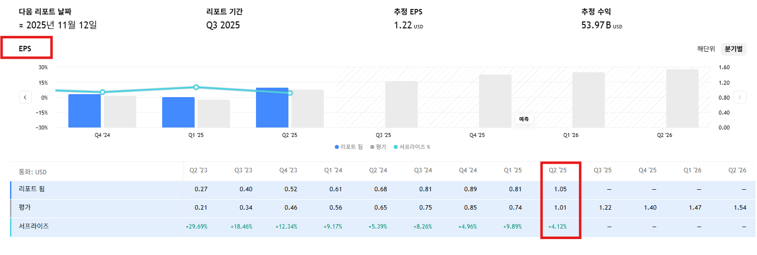 • EPS(주당순이익): 1.05달러 (예상 1.01달러 상회)