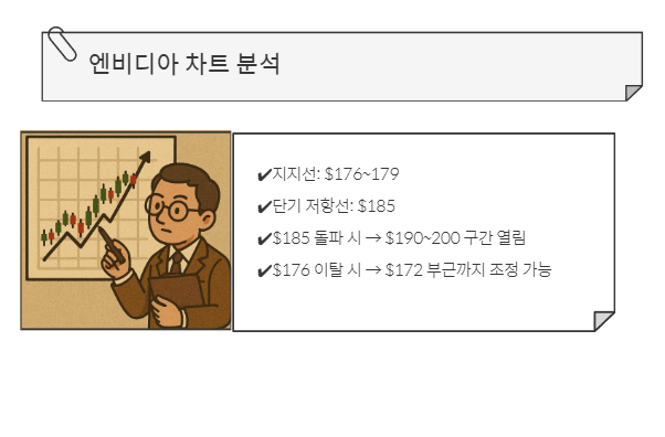 최근 주가는 180달러 전후에서 움직이고 있으며, 단기 저항선은 185달러 부근입니다.