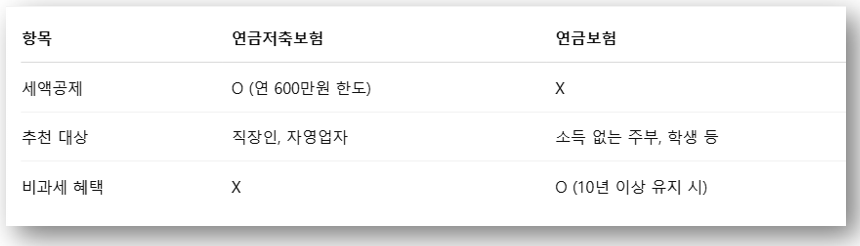 🔍 비과세 혜택이 중요하다면 → 연금보험