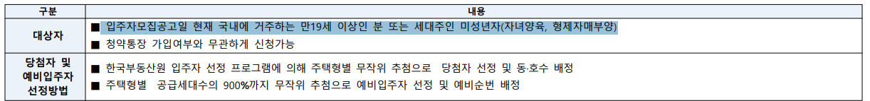 - 청약홈 가입자로, 만 19세 이상 성년자(무주택자 또는 1주택자 가능)