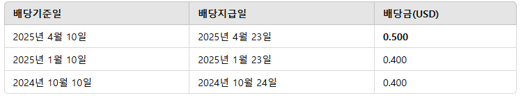 오라클은 꾸준한 분기 배당을 지급하는 배당주입니다.