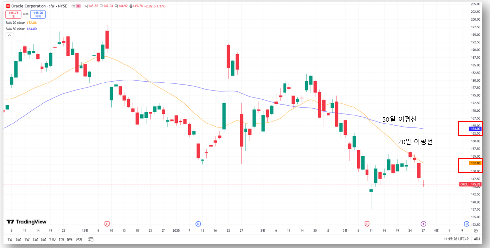 미국 대표 IT 기업 중 하나인 오라클(ORCL)이 최근 145.78달러까지 하락하며 투자자들의 관심이 다시 집중되고 있습니다.