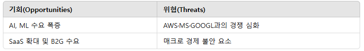 - AWS, Azure 등 선두 기업에 비해 클라우드 점유율 낮음