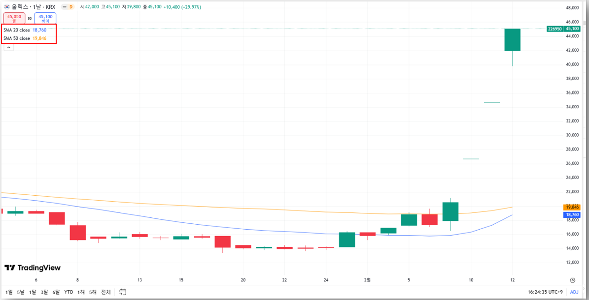 - 2월 10일~11일: 연속 상한가(+29.97%) 기록