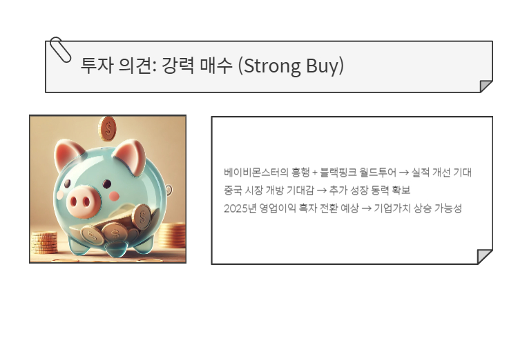- 베이비몬스터의 흥행 + 블랙핑크 월드투어 → 실적 개선 기대