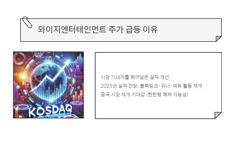 YG엔터는 2024년 4분기 실적이 시장 예상치를 뛰어넘으면서 투자 심리가 개선되었습니다.