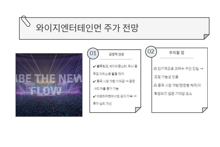 ✔ 중국 시장 개방 기대감 → 공연·MD 매출 증가 가능