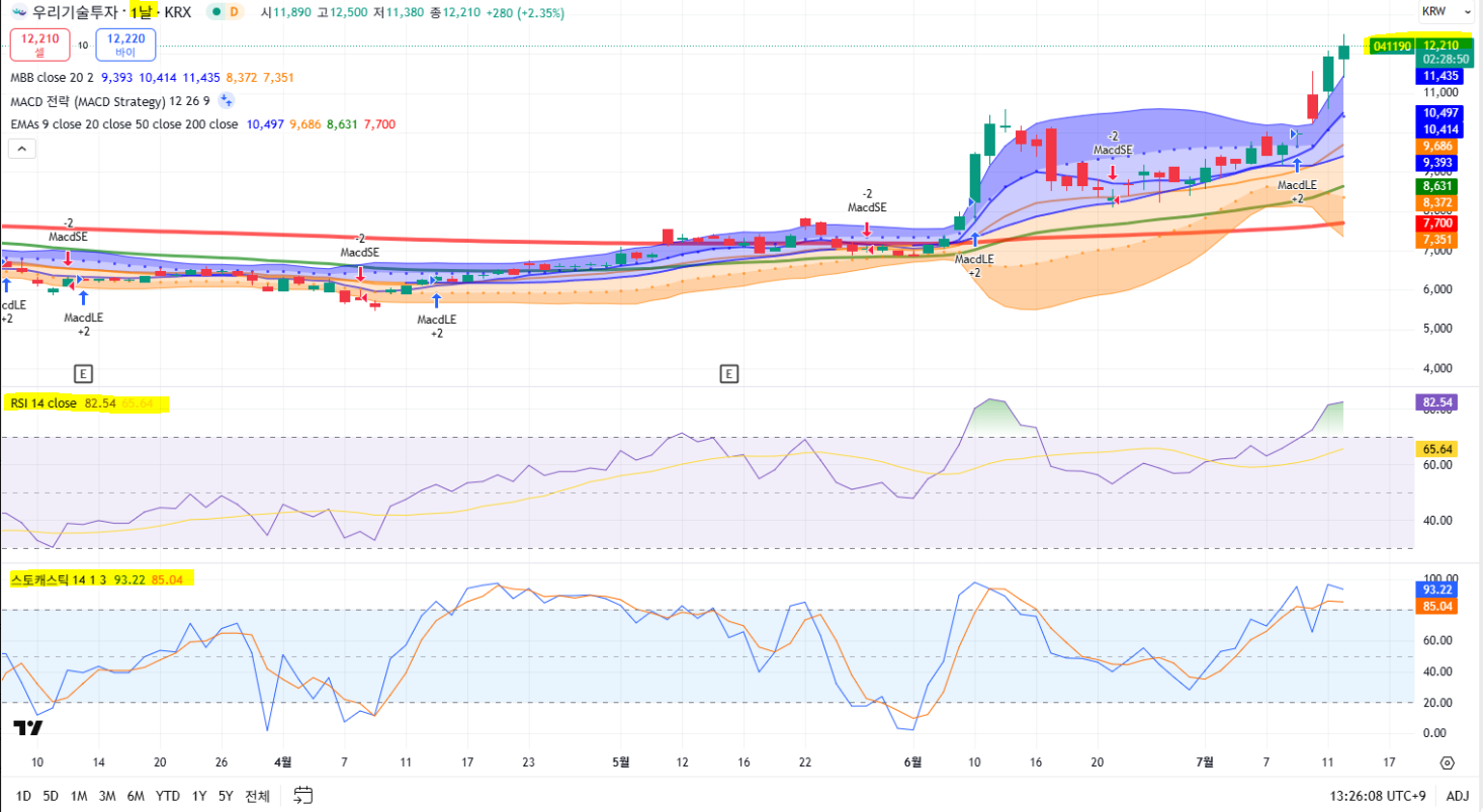 - 스토캐스틱(96.16) + RSI(67.47): 강세장 진입 중