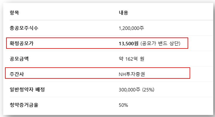 - 공모가는 13,500원 상단으로 확정되었으며, 대부분의 기관들이 상단 가격에 몰려 청약 경쟁이 치열했습니다.