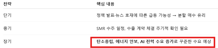 SMR 중심의 기술 확장과 정부 정책 수혜가 맞물리며,