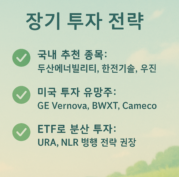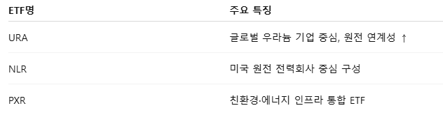 ✅ ETF로 분산 투자: URA, NLR 병행 전략 권장