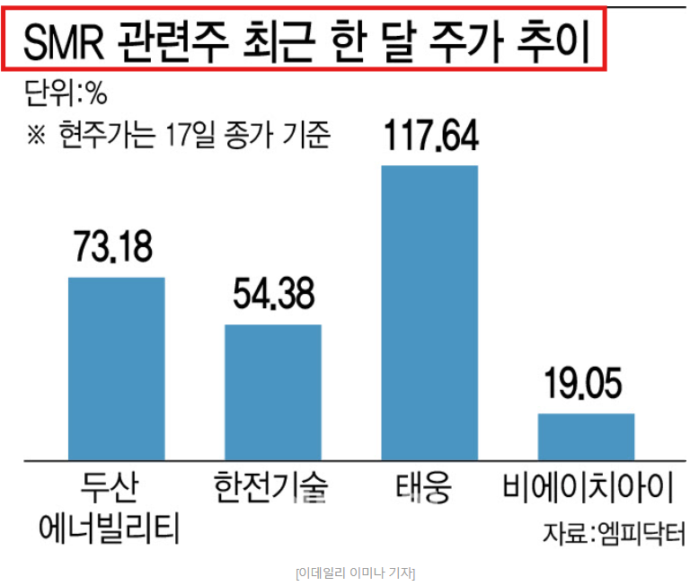 SMR(소형모듈원자로) 중심의 기술 발전과 함께, 국내외 에너지 정책 수혜 기대감이 커지고 있기 때문입니다.