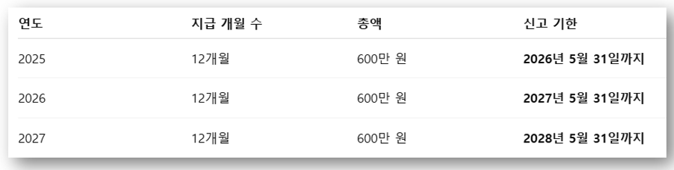 - 매년 실제 지급된 금액(예: 연간 600만 원)에 대해 연 1회 신고