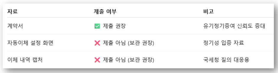 - 계약서 작성: 기간, 금액, 주기 명시 + 서명