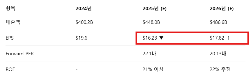 - 2025년 EPS는 전년보다 41% 하락 예상되지만,
