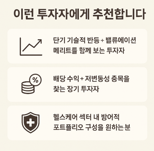 특히 배당 성장주, 저PER 저평가 구간, 방어적 섹터(헬스케어) 선호 투자자라면 주목할 필요가 있습니다.