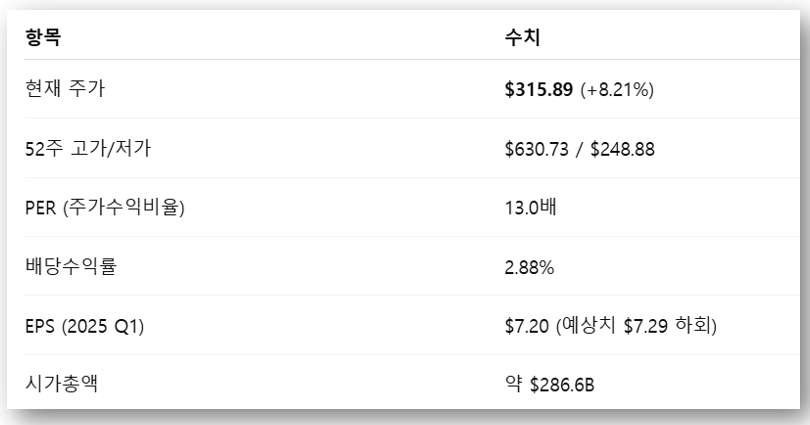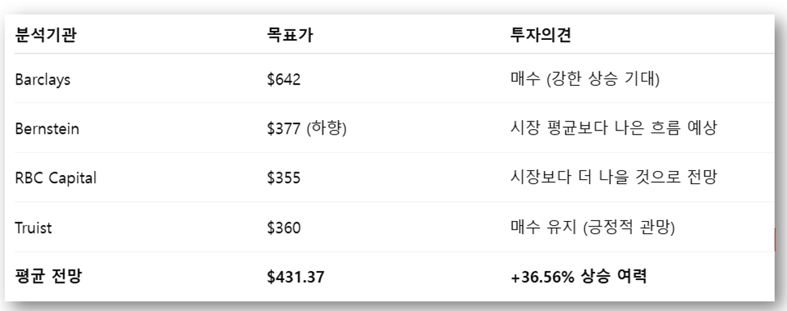 애널리스트 평균 목표가 $431.37 (+36.56%)