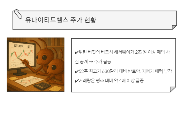 유나이티드헬스는 단기적으로는 변동성이 크지만, 워런 버핏의 대규모 매수와 저평가 매력이 부각되면서 중장기 성장성과 배당 안정성을 동시에 갖춘 종목으로 평가됩니다.