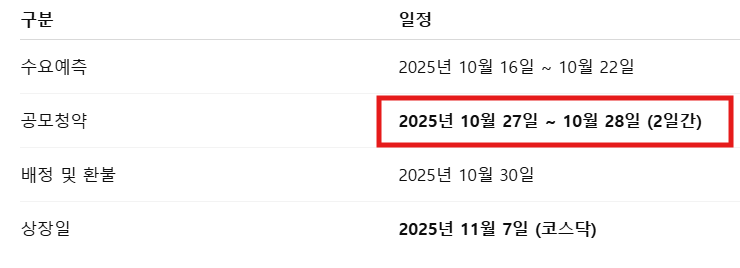 공모청약 일정은 10.27~28일 16:00까지입니다!