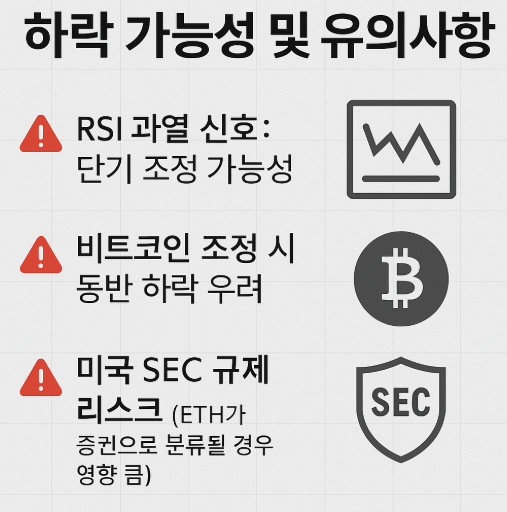 - ❗ 미국 SEC 규제 리스크 (ETH가 증권으로 분류될 경우 영향 큼)