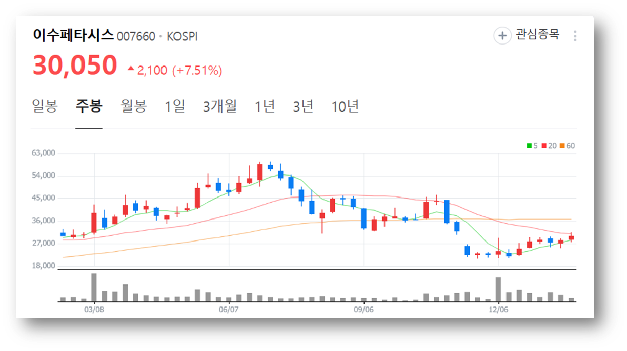 2.이수페타시스 주가 현황 및 재무 정보
