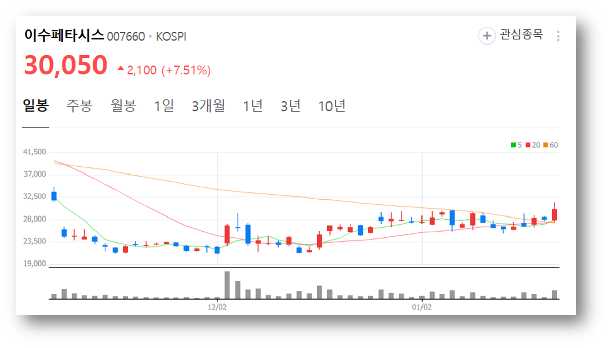 1️⃣이수페타시스 급등 소식