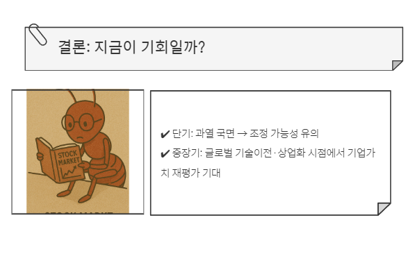 👉 투자자라면 단기 급등에 추격매수보다는, 눌림목을 기다린 뒤 중장기 관점으로 접근하는 전략이 바람직합니다.