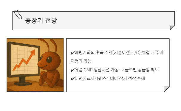 - 베링거와의 후속 계약(기술이전·L/O) 체결 시 주가 재평가 가능