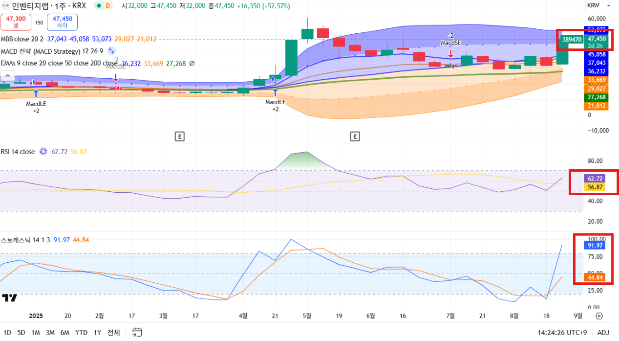 - 주봉 스토캐스틱: 91.9 (강한 모멘텀)