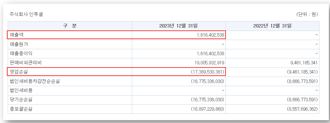 - 다만, 현재는 적자 상태이므로 투자 시 미래 성장성을 중점적으로 평가해야 합니다.