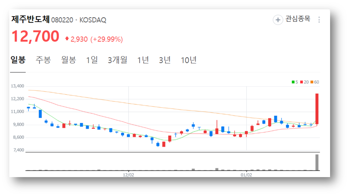 1. 제주반도체 주가 상승 소식