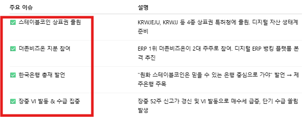 📌 제주은행은 2025년 7월 8일자로 총 4종의 스테이블코인 관련 상표권을 출원했습니다. 디지털 전환에 박차를 가하며, 정부의 스테이블코인 제도화 흐름에 선제 대응한 것으로 평가됩니다.
