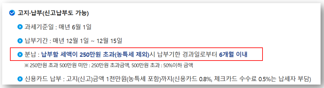 • 250만 원 초과 시 분납 가능