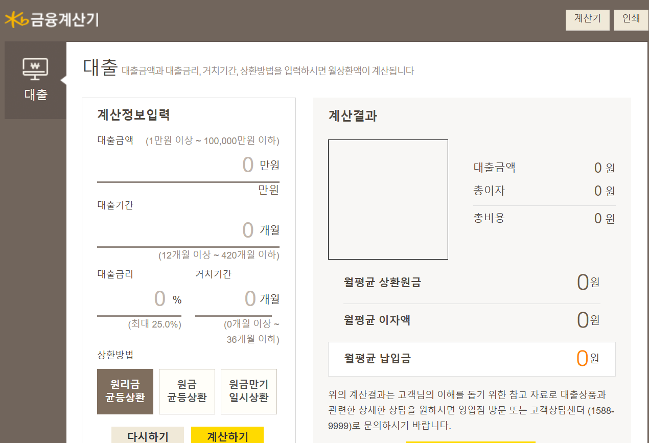 - 상환 방식: 원리금균등분할, 원금균등, 체증식 분할상환