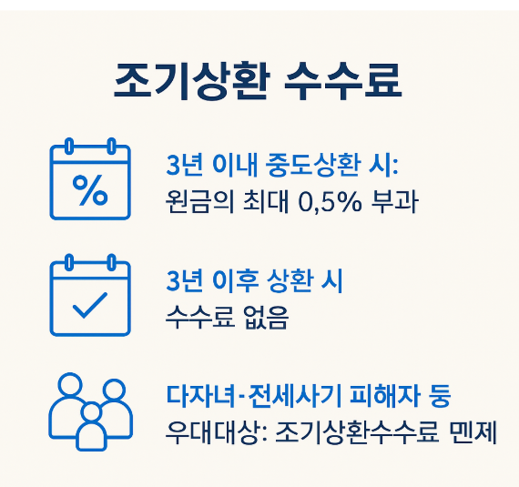 - 3년 이내 중도상환 시: 원금의 최대 0.5% 부과