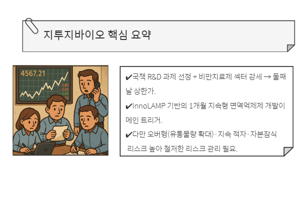 - InnoLAMP 기반의 1개월 지속형 면역억제제 개발이 메인 트리거.