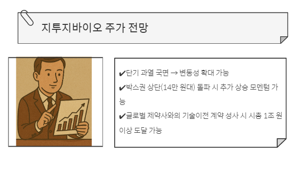 지투지바이오는 상장 초기 폭발적인 모멘텀을 보여주고 있으며, 향후 주가 전망은 임상 진전과 기술수출 계약 여부에 따라 크게 갈릴 수 있습니다.