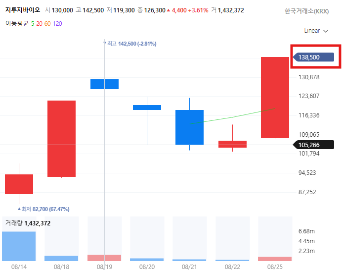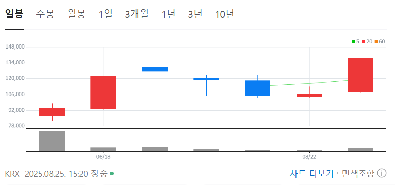 - 8월 25일 종가: 138,500원 (+29.92%)